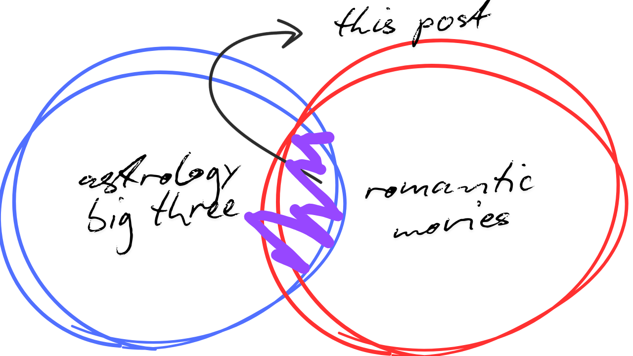 And hey, why not provide some levity by flirting around with this astrology and romcom intersection? It is just for fun. I’d love to play with tone and writing style, even for just a post - let’s be a bit goofy, okay?